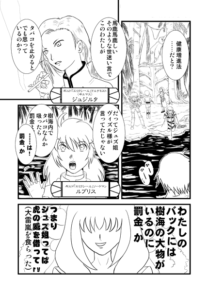 ■華王様と俺(わたし) 2008.9.21発行 コピー本:本文16P 200円 アルルン×ショタパラと銘打ってますがギャグです。 エロくはありません。 とあるギルド(ぶっちゃけ我が家の『エリクシール』)のパラディンが なぜかアルルーナの下に一人で赴いて、帰ってこなかった。 救出に出向いた仲間達が、樹海の奥で見たものは……w サンプル1 サンプル2 |