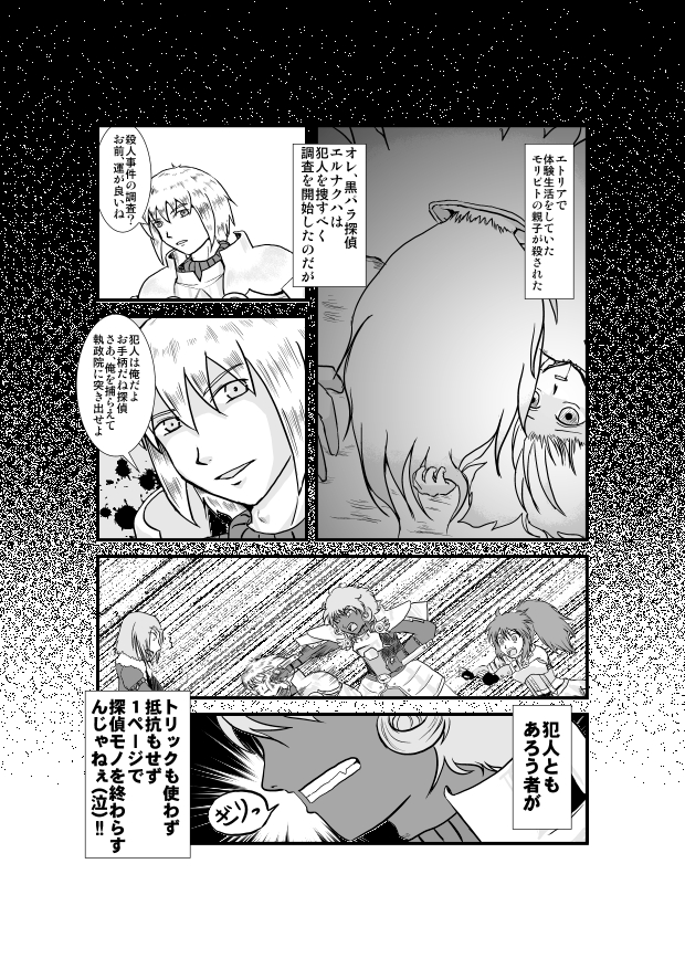 ■Orange Pekoe! 2007.11.3発行 コピー本:本文16P 200円 自分でもよくわからないままに、モリビト萌えが高じて描き上げた全編ギャグ。 巫女様が蒼樹海で溺れかけたり、枯レ森に癒しどころができたり 貴婦人姫君が暴走したりしてます。 人間の冒険者は基本的に無名設定ですが、最後の方で 『ウルスラグナ』一行が顔出してたり。 サンプル1 サンプル2 |